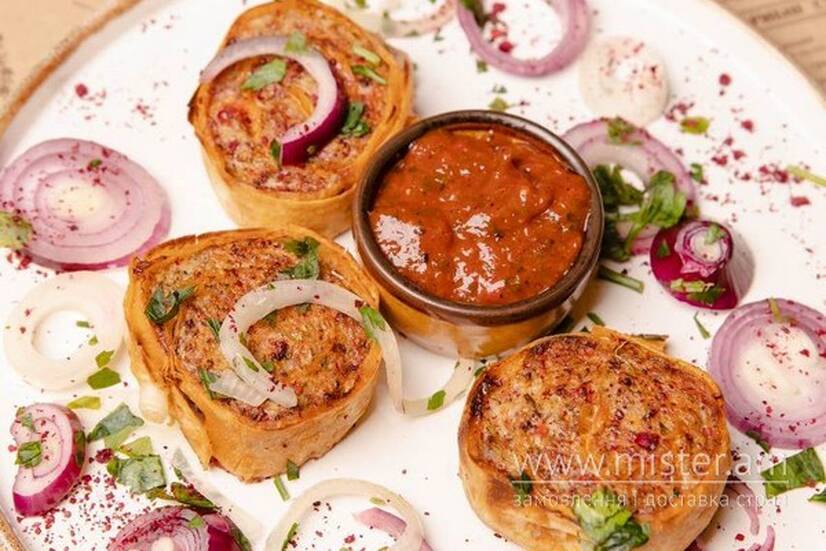 Телячий фарш з болгарським перцем та заленню в лаваші.
