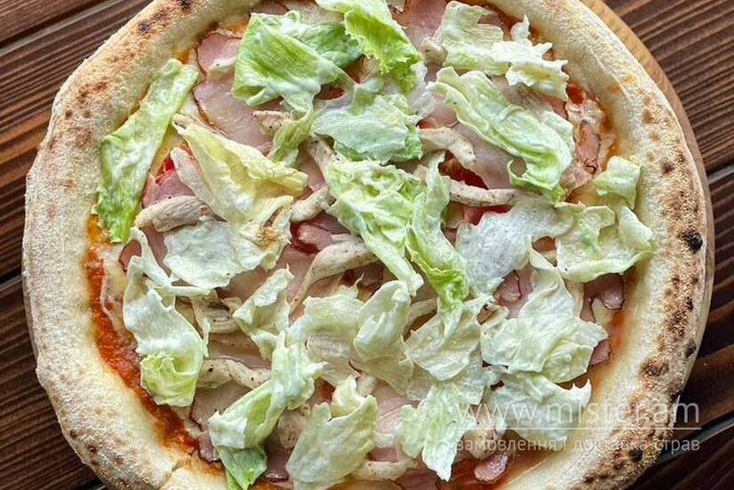 соус пелаті, курка, бекон, айзберг, моцарела, пармезан, білий соус