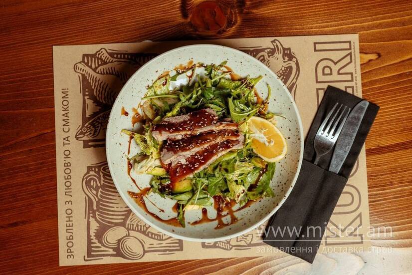 Салат з качиною грудкою в соусі унагі