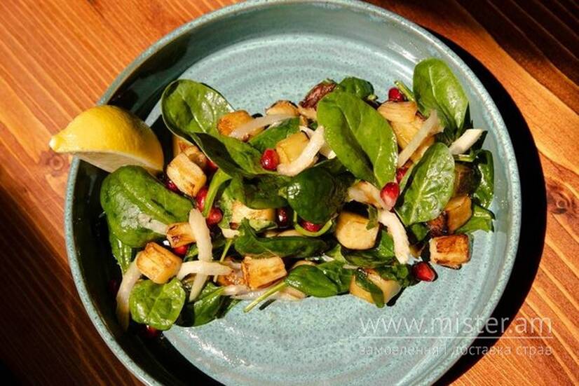 Шпинат, селера, гранат, горіх, гранатовий соус.