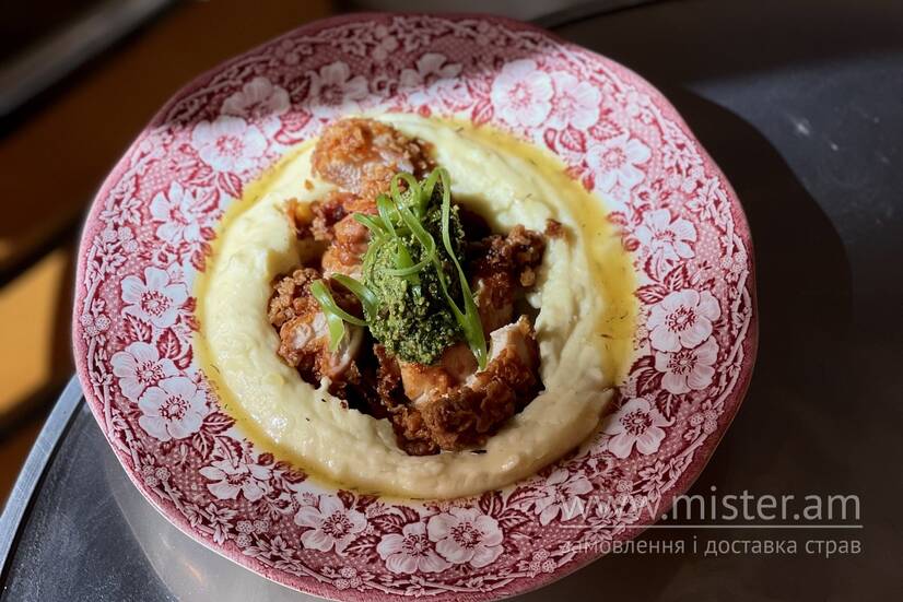 Кафе Матьє Трюфельне пюре з хрумкою куркою та соусом берблан