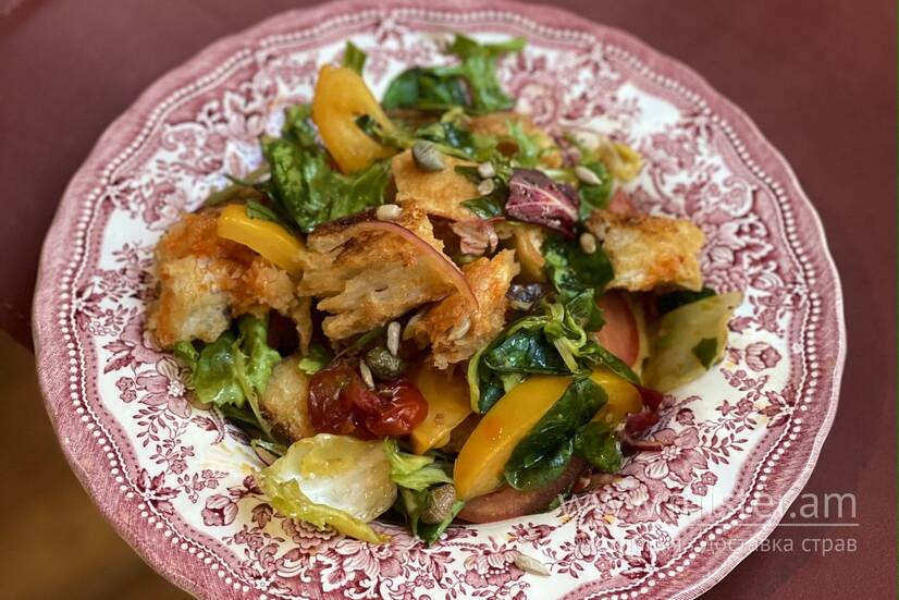 Салат з хрумкою куркою, м`яким яйцем і ікрою