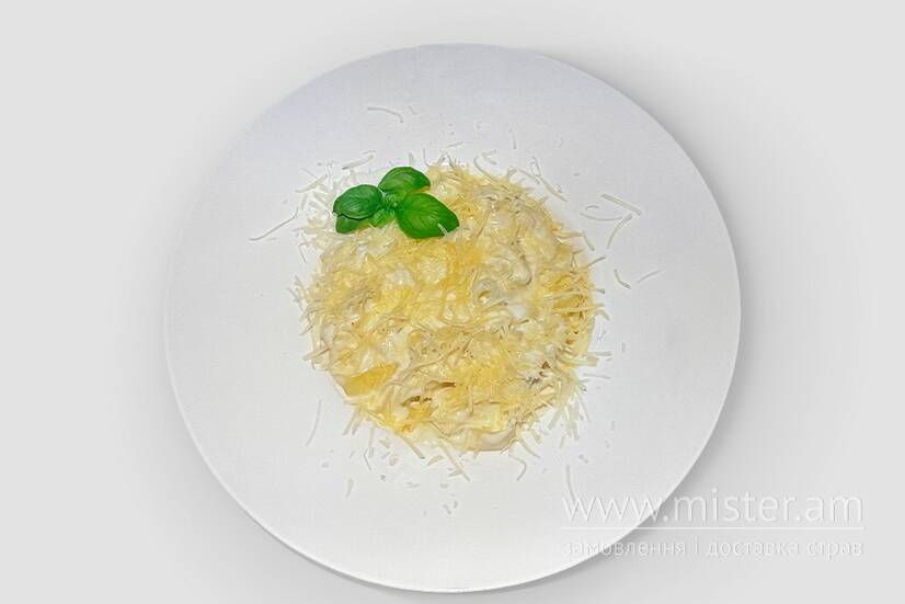 Паста власного виробництва в сирному соусі з чотирьох видів сиру.