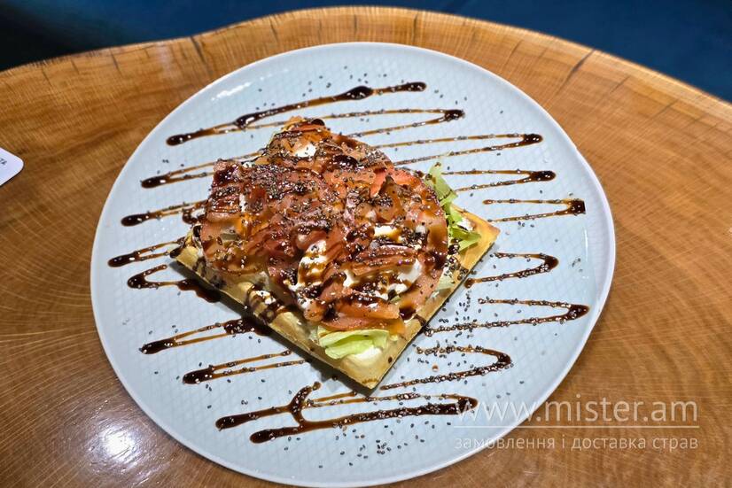 Крем-сир, зелень, моцарела, авокадо, томати свіжі, риба, бальзамічний соус, чіа.