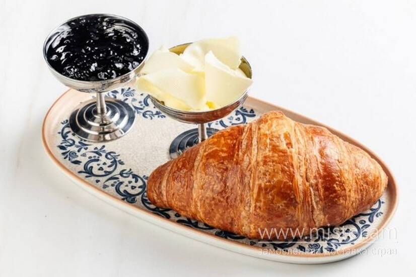 Круасан з маслом та джемом в банці