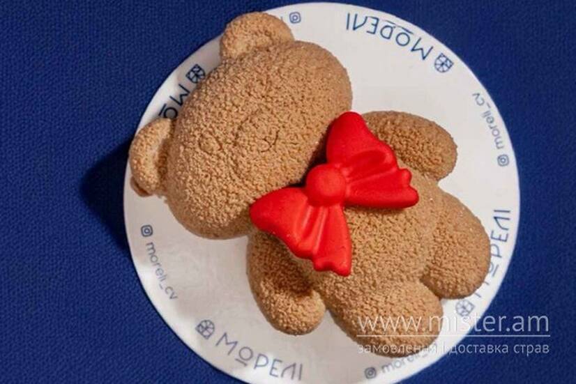Шоколадно-цитрусовий мус, мандаринове компоте, шоколадний бісквіт, покриття з шоколадного велюру.
