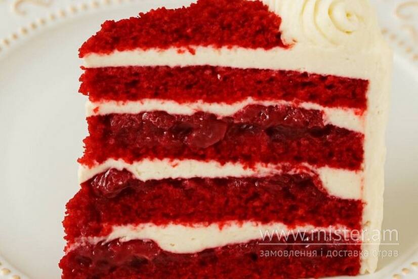 Оксамитові коржі, ніжно просочені вишневим соком, з повітряним кремом чіз та соковитою вишнею, що додає яскравої кислинки.