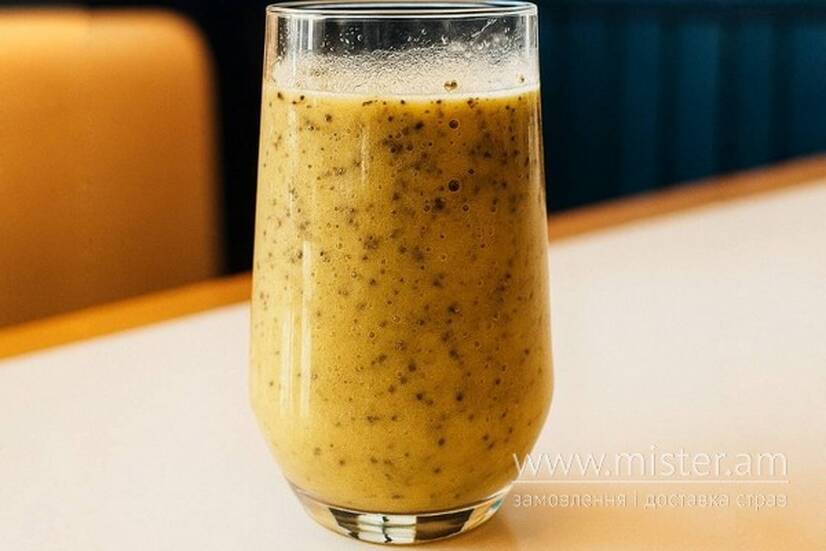 Натуральний суперфуд-коктейль із яблука, банана та яблучного соку з додаванням насіння чіа. Хрусткий лід та корисні властивості — усе в одному ковтку!