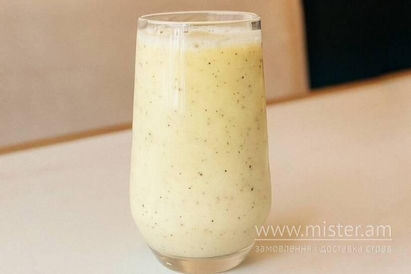 Сонячний мікс тропічного ананасового соку, стиглого банана та соковитого ківі, доповнений прохолодною свіжістю льоду.