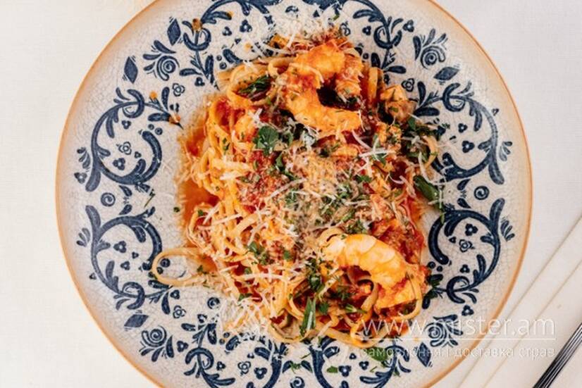 Лінгвіні з томатною пастою лососем та креветкою