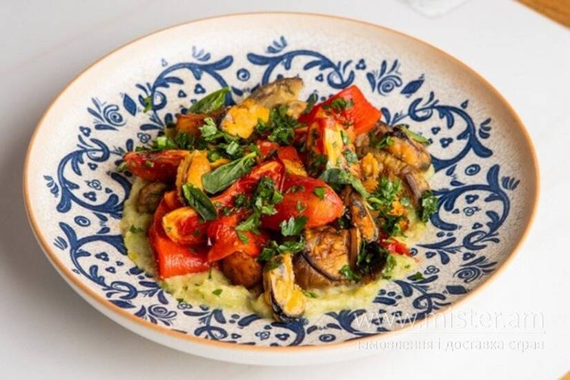 Теплий салат з печених овочів та кремом з цукіні