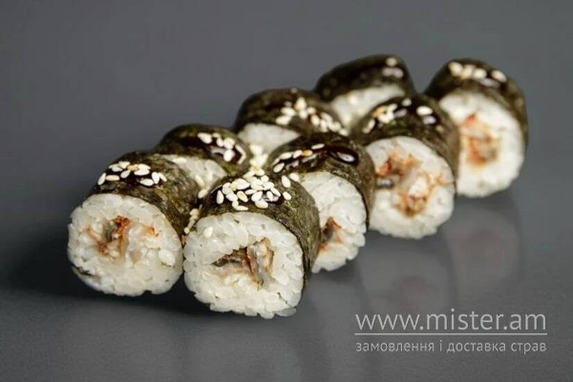 Вугор, рис, норі, соус Унагі, кунжут білий.