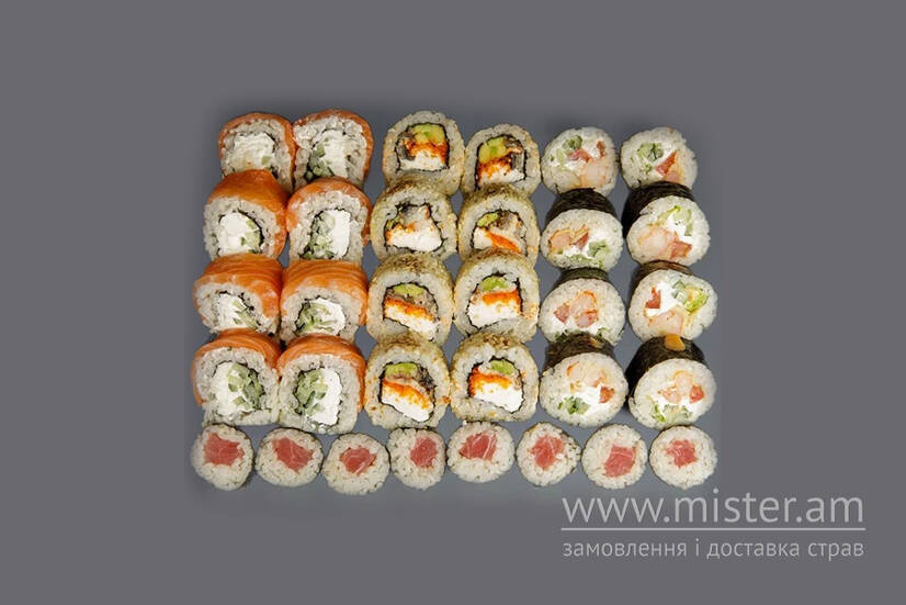 Філадельфія з лососем, Філадельфія унагі, Футомак з креветкою, Макі з тунцем.