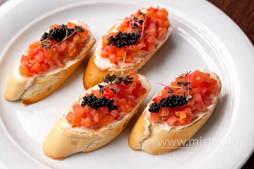 Брускети з лососем, чізом та кав`яром