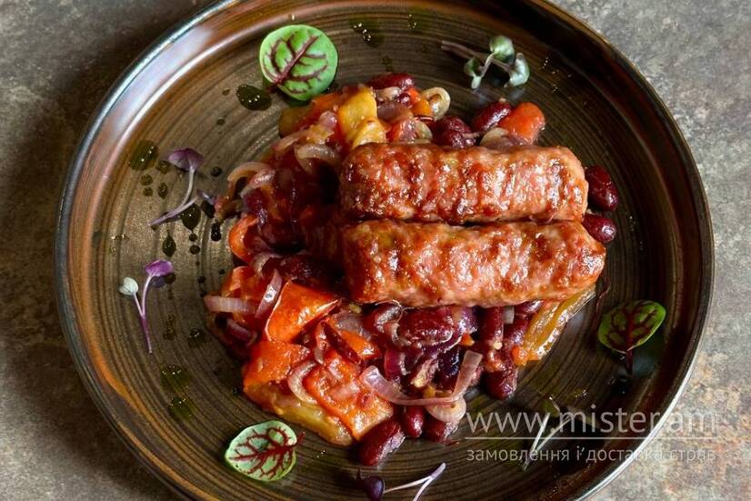 Мітітеї зі свинини та телятини, подаються з тушкованими овочами.