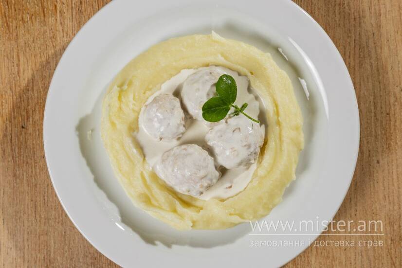 Курячі тефтелі у вершковому соусі на картопляному пюре