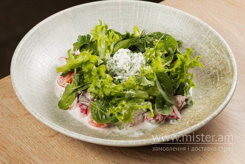 Панська Гуральня Салат зі свіжих помідор, огірків, редису та творожного крему