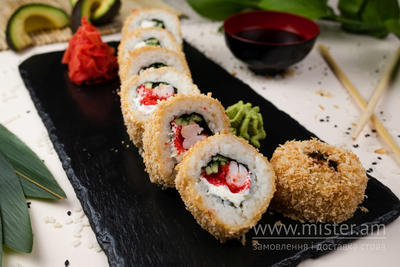 рис, креветка, філадельфія, тобіко, огірок, темтура, спайсі соус