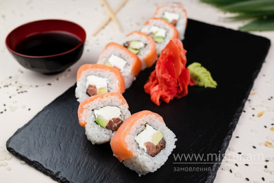 Рис, копчений лосось, Філадельфія, авокадо.