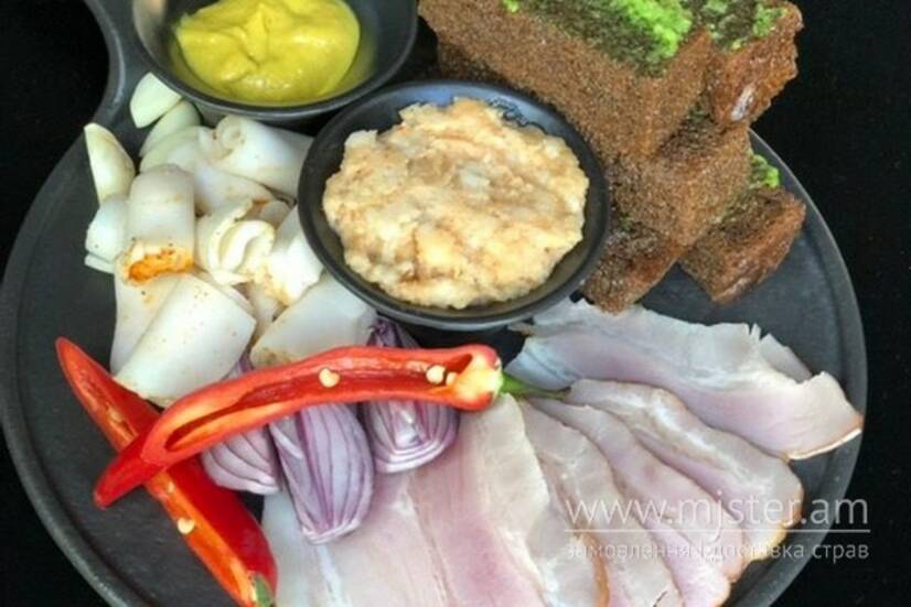 Сало: копчене, мелене, морожене, грінки, соус, часник.