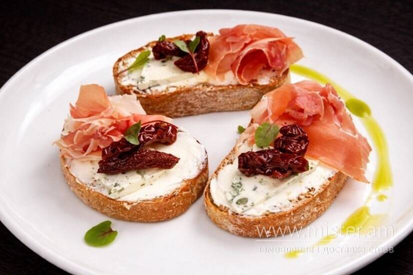 Сир Філадельфія, прошуто, в`ялені томати, горгонзолла.