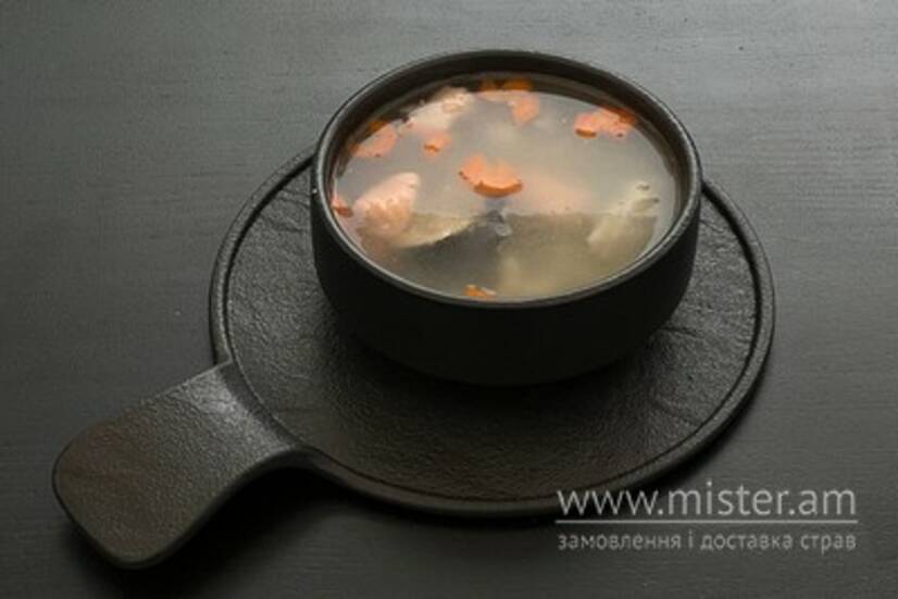 Лосось, судак, креветка коктельна, картопля, морква, цибуля.