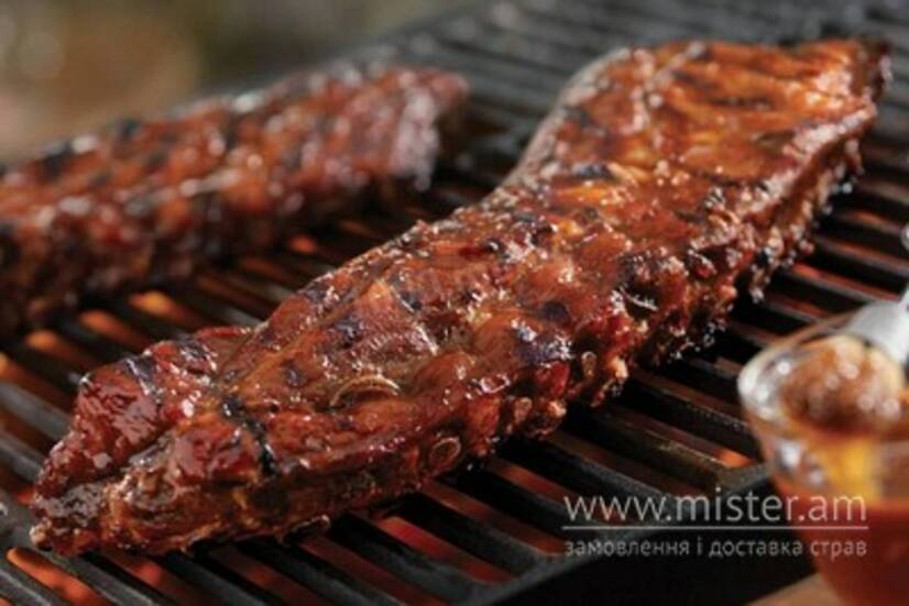 Ребра свинні, кукурудза на мангалі. Увага! Вагова страва, ціна за 100 г, кінцеву вартість заклад узгодить з Вами телефоном.