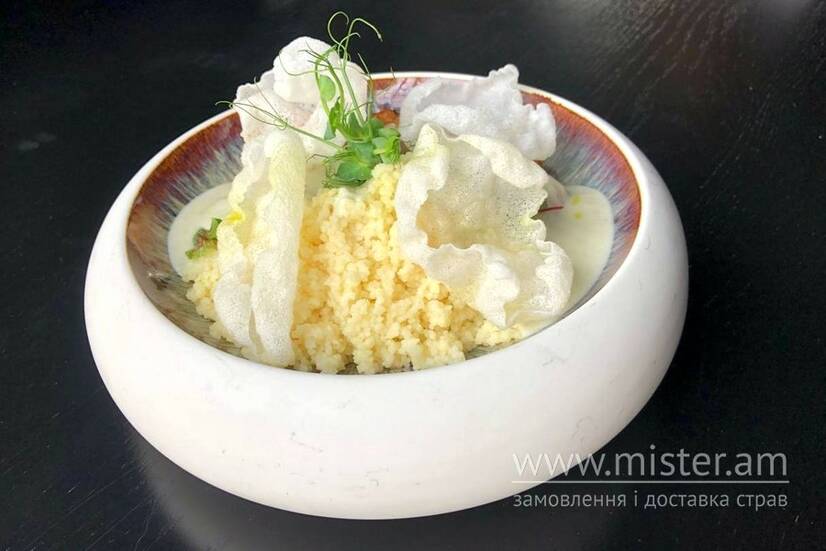 Куряче стегно, кус кус, соус дор блю.