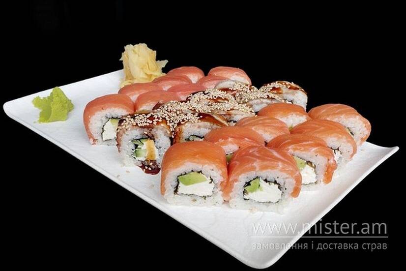 Філадельфія зі свіжим лососем, Філадельфія з копченим лососем, Філадельфія з вугрем.