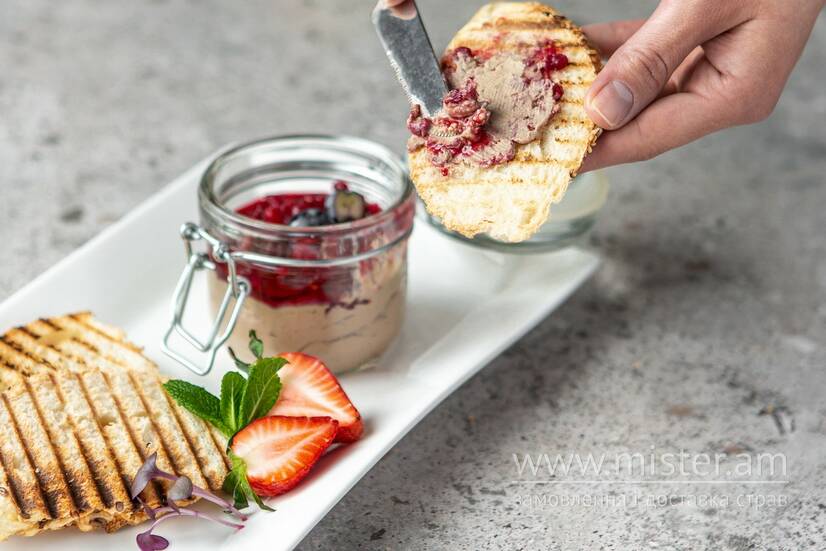 Паштет з курячої печінки з карамелізованою кримською цибулею з додаванням коньяку.