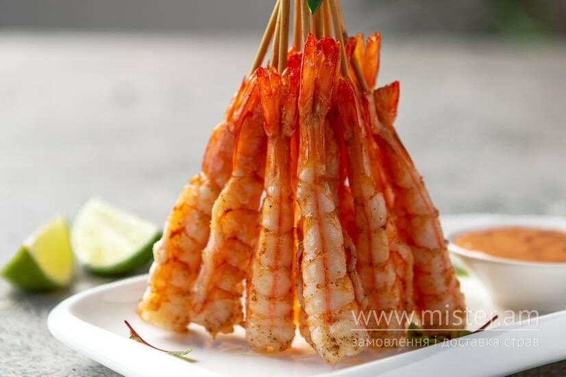 Смажені креветки на шпажках
