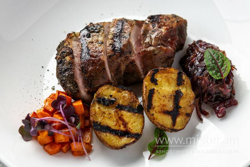 Шия свинна, картопля, цибуля, морква сіль, перець.