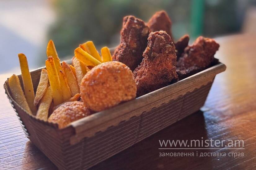 Фрі, куряче плече, сирні кульки.