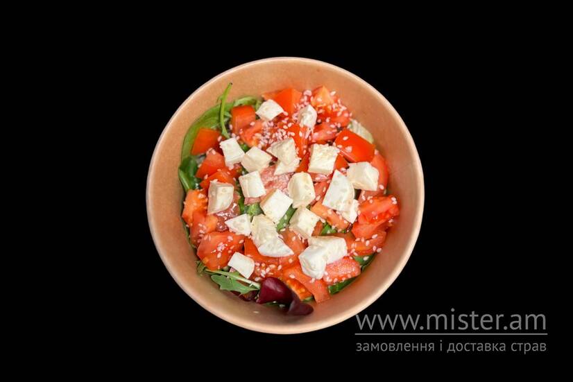 Мікс салату, соус цезар,помідор, сир моцарела.