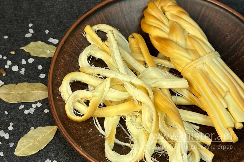 Крафтовий кисломолочний сир з помірною солонуватістю і характерним ароматом копчення. Консистенція сиру розшаровується на тонкі нитки, які досить щільні за текстурою.