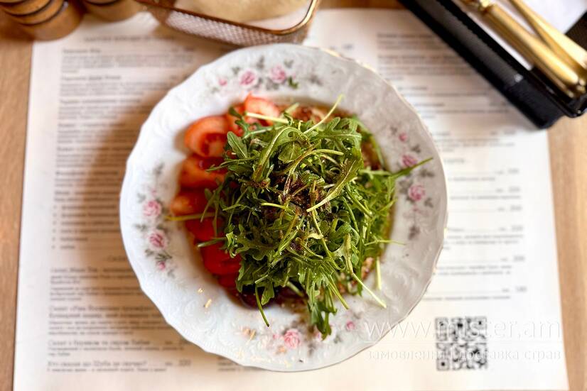 Традиційна паста з нуту, заправлена тахіною, заатаром та оливковою олією. Подаємо із запеченим в хоспері солодким перцем, салатом зі свіжої руколи та пітою.