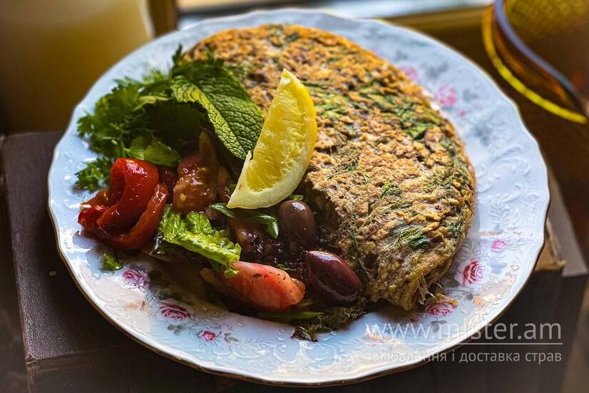 Традиційний єврейський омлет з мацою, подаю з йо гуртовим сиром та салатом.
