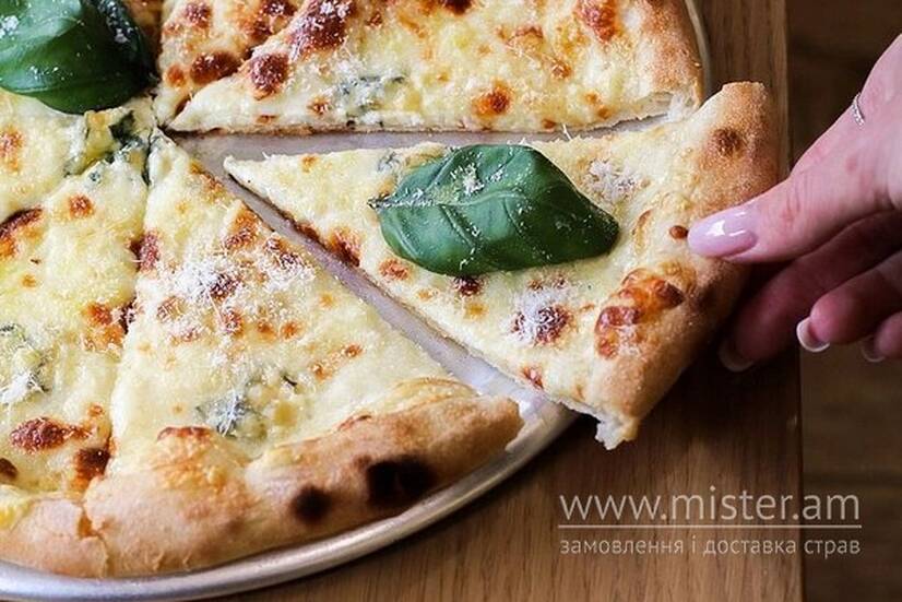 Вершкова основа, моцарела, пармезан, дорблю, ементаль.