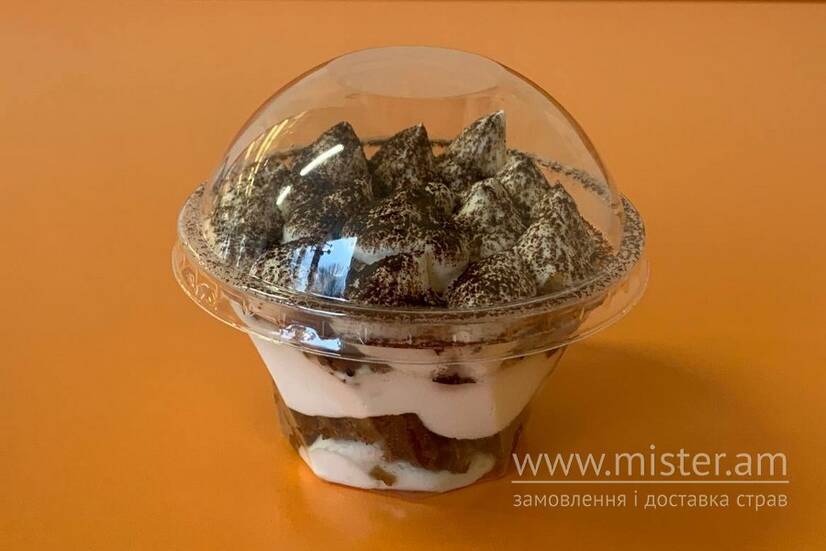 Вершковий крем Маскарпоне, печиво Савоярді, просочене кавою та коньяком.
