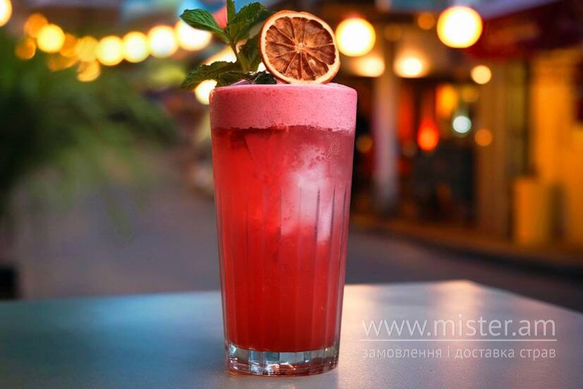 Освіжаючий лимонад на основі вишневого соку, сиропами Monin Pink Grapefruit, Frosted Mint, Easy Foam та спрайтом. Солодкий і злегка кислуватий, з яскравими нотками вишні та прохолодним ефектом м`яти.