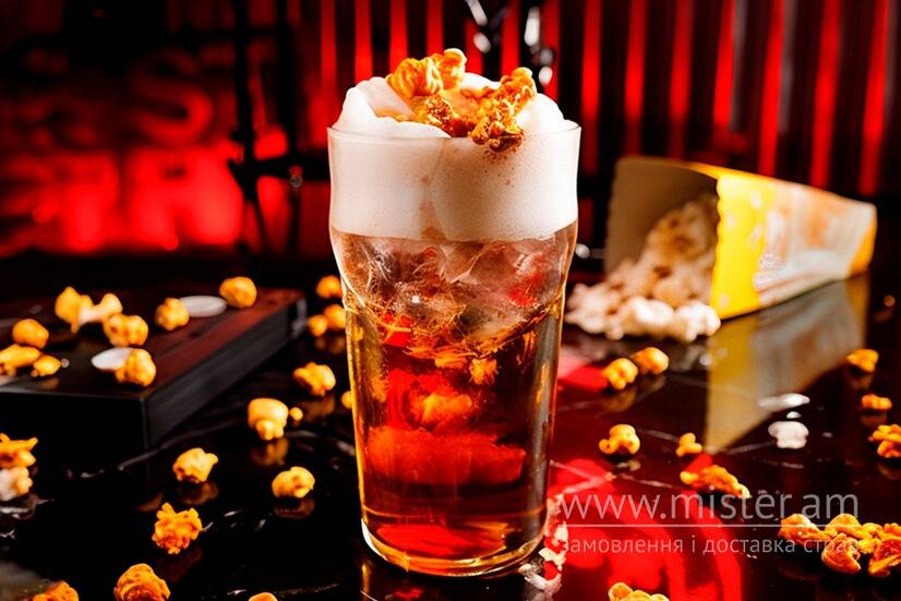 Освіжаючий лимонад з яблучним соком, сиропом попкорн і карамеллю, доповнений спрайтом. Пряний, злегка кислуватий, що створює нетиповий смак.