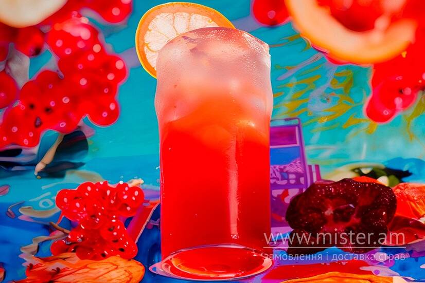 Легкий лимонад на основі ананасового соку з сиропами Monin Strawberry та Coconut, Sour Mix і содовою. Яскравий тропічний смак у поєднанні зі свіжістю.