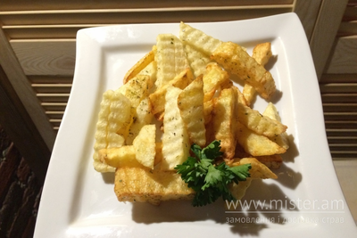 Другі страви: Фірмовий дерун з начинкою “Терція”, Крильця курячі (100г, на вагу), Картопля "Айдахо", Рибка морська з овочами, Свинина "Фаберже", Деруни зі сметаною, Картопля запечена, Квасоля з грибами, Короп смажений (100г, на вагу), Свинячі реберця в медовій глазурі (100г, на вагу), Жаровня для друзів, Мітетеї з телятини, Курячий стейк (100г, на вагу), Рулька запечена в пиві (за 2 години! на вагу), Стейк телячий (100г на вагу), Телячі медальйони, Чашушулі з телятини, Курячі нагетси, Биток свинячий
