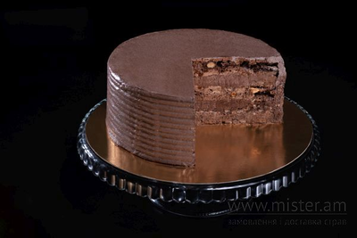 шоколадний бісквіт , повітряно-горіховий корж з какао , шоколадний крем та смажений арахіс