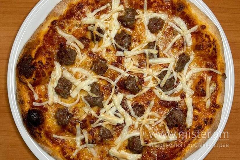 Соус, моцарелла, сулгуні, свіжа ковбаса.