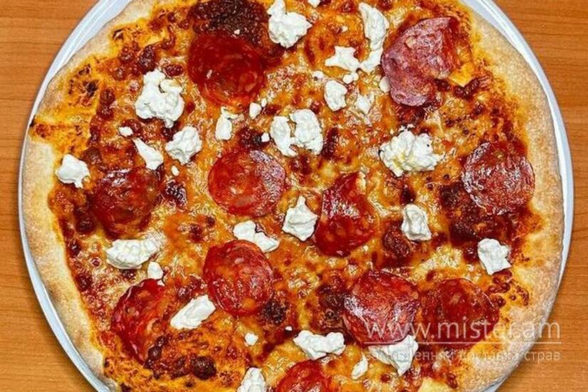 Соус, моцарелла, пряна ковбаса, крем-сир.