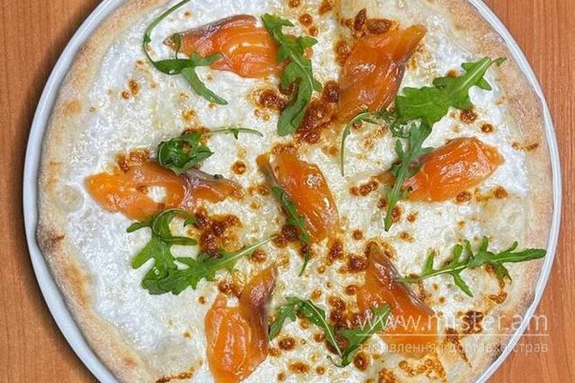 Вершки, моцарелла, слабосолений лосось, рукола.