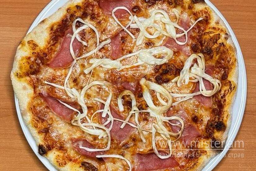 Соус, моцарелла, запечена шинка, сулугуні.