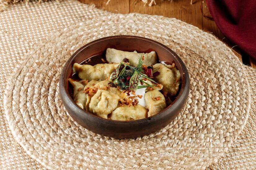 Ресторація "Хата" Вареники з томленою яловичиною та демігласом з білими грибами