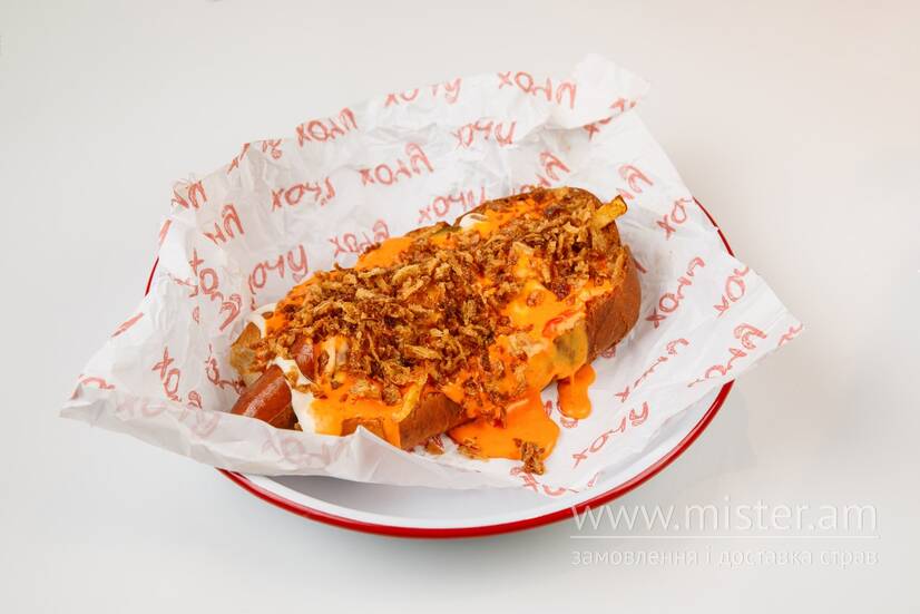 Хот-дог сирний з кранч цибулею